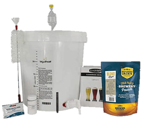 Los utensilios incluyen tapadora, tapas corona, cubeta para fermentación, trampa de aire, botellas, etc.