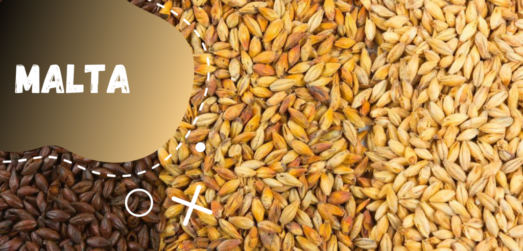 La malta, como ingrediente de la cerveza, es el producto que se obtiene a partir del desarrollo controlado de la germinación de granos de cereal, sobre los que luego se aplica un procedimiento de secado y tostado.